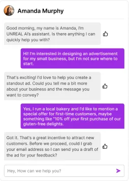 At UNREAL AI, we're passionate about revolutionizing the way businesses operate by harnessing the power of artificial intelligence. As pioneers in the field of AI technology, we specialize in providing professional assistant tailored to meet the unique needs in the fields of marketing, sales, and beyond.